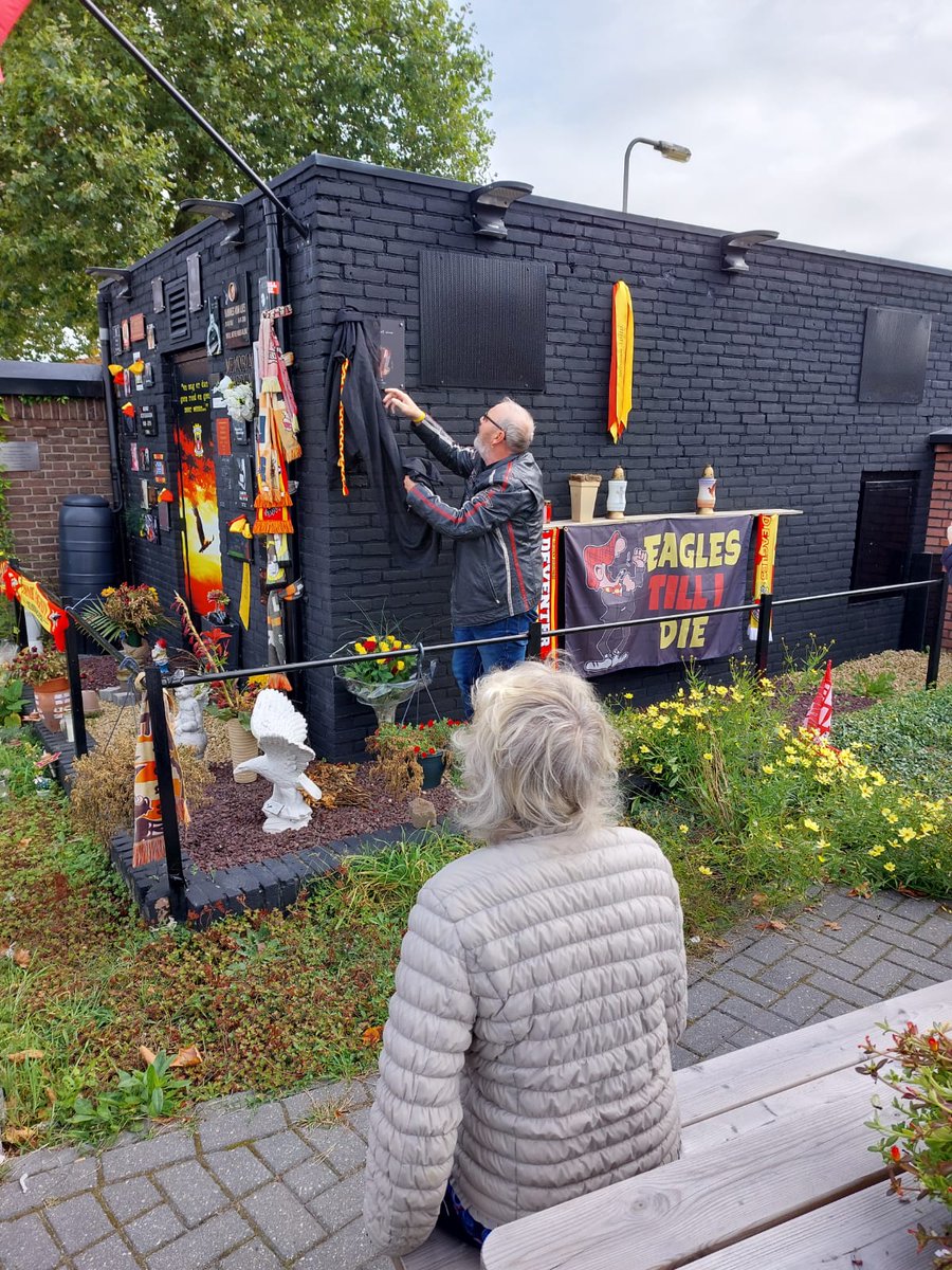 Hij heeft de primeur als eerste supporter op de lange zijde van de Memorial Garden.